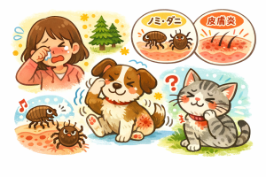 マダニは皮膚トラブルの原因になるだけでなく、さまざまな感染症を媒介することが知られているため、春先からの継続的な予防が重要です。