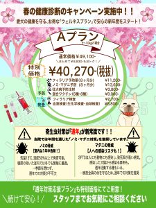 当院でも、ノミ・ダニ予防薬の処方を含んだ春の予防プラン(ウェルネスプラン)が始まりました。