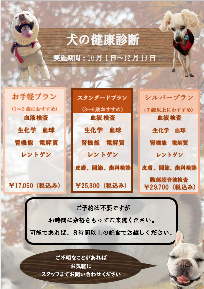 当院では、半年に1回の健康診断により、病気の早期発見、早期治療を目指しています。
