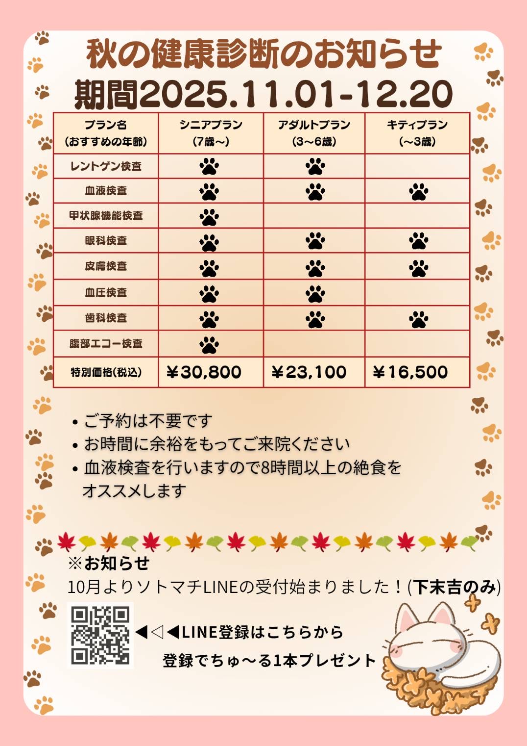 当院では、半年に1回の健康診断により、病気の早期発見、早期治療を目指しています。