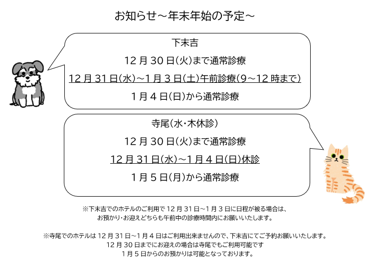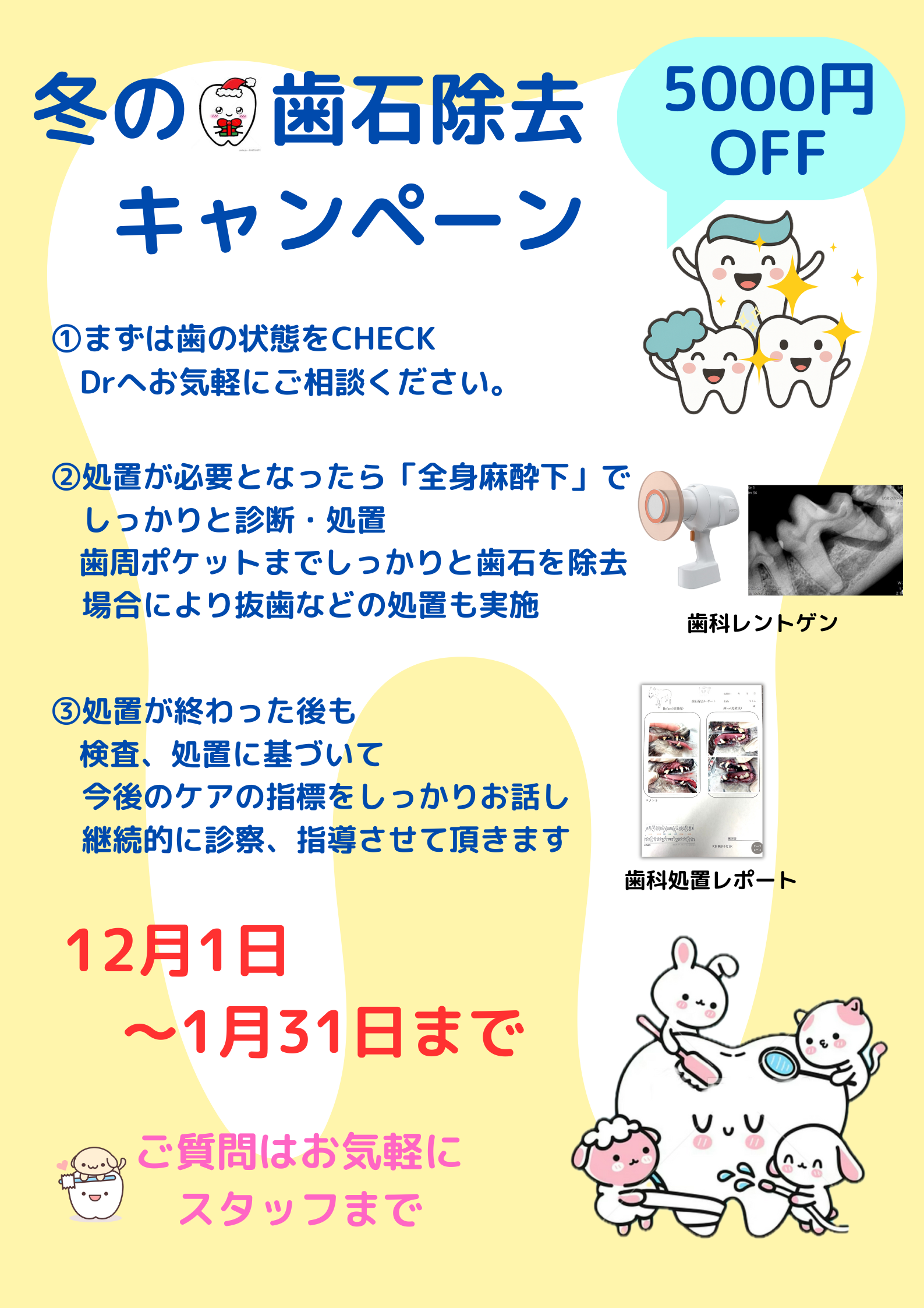 犬猫の寒さ対策について(年末年始の診療・歯石除去キャンペーンのお知らせ)